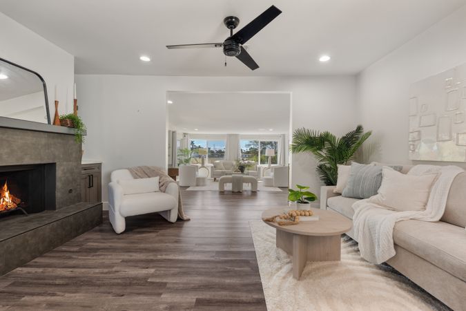 WILL NOT LAST! Welcome to your future North Clairemont oasis! This stunning one story remodeled home is move-in ready, offering both comfort and style on a generous 8,800 sq ft lot. The lush landscaping creates a serene backdrop for everyday living. Soak up the sunshine on your patio or in the spacious sunroom, and as the seasons change, gather around the fireplace for cozy holiday evenings. Expansive windows fill the home with natural light. Thoughtful upgrades include newer appliances, AC, a dedicated laundry room, and a 2 car garage.